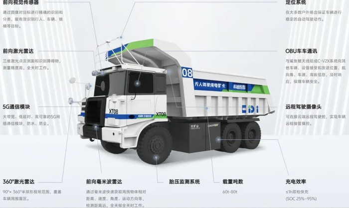 2年后,14台纯电无人矿卡投运,成为业内首个全矿山无人驾驶项目。经测算,无人矿卡作业效率达到有人的1.04倍,能耗成本减少88%。